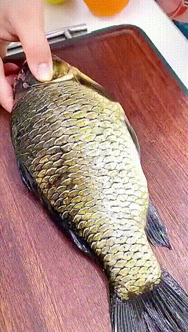 MULTI-FUNCTION CUTTING EXAMPLE: The sharp edge of this tool not only scales but also easily guts fish, streamlining the process with a single tool.